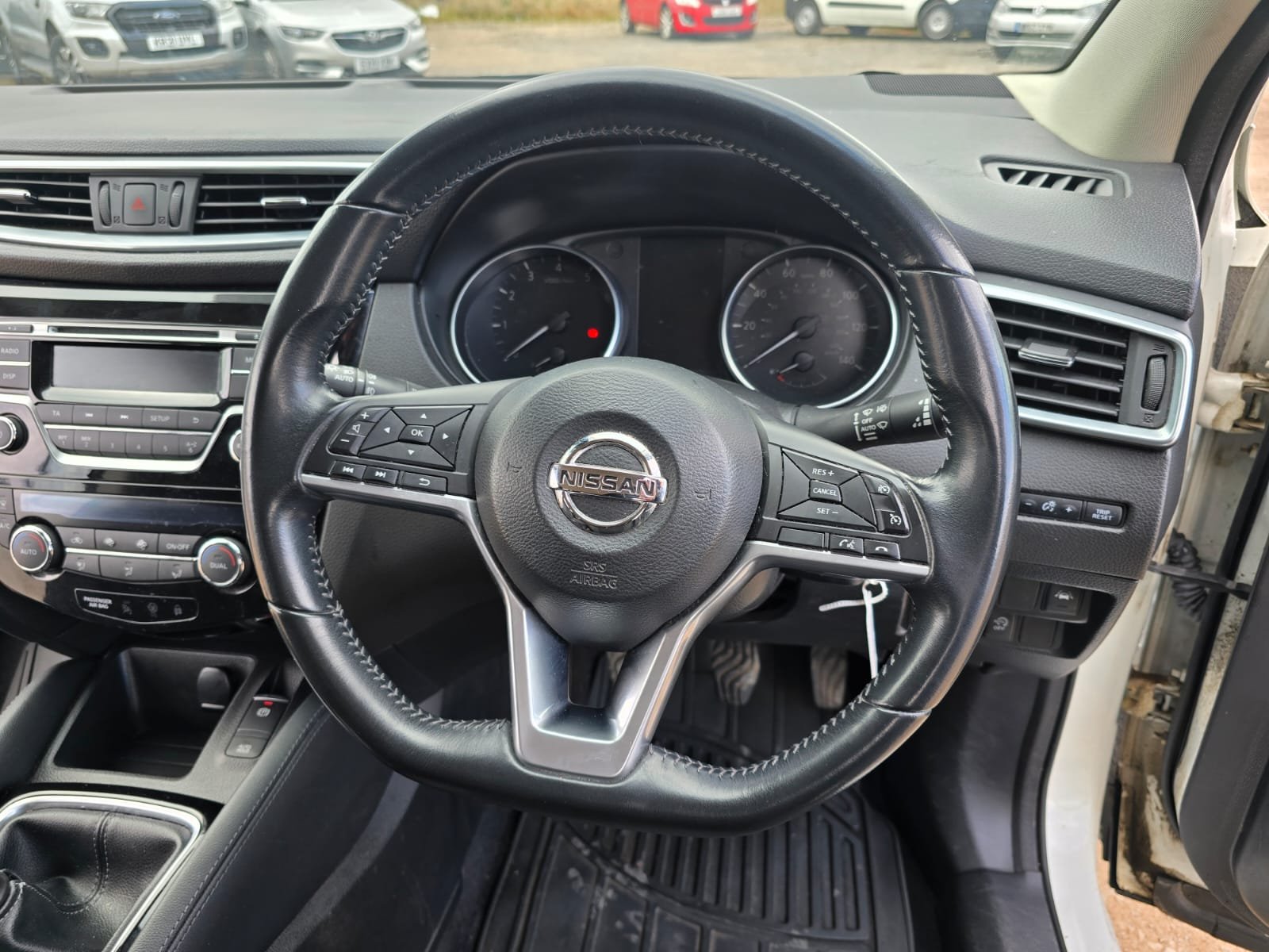 This car comes with 5 seats, White, 3 owners, Upgrades - 18in Alloy Wheels - Bi-Colour, Comfort Pack, Heat Pack, Tech Pack, Cloth - Graphite Bi-Colour, Smart Vision Pack, Standard Features - 17in Alloy Wheels - Aero, 3 Height Adjustable Rear Headrests, 6 Speakers, 60-40 Split Rear Folding Seats, AM-FM Radio and CD Player, AUX Socket, Advanced Drive Assist Display - 5in TFT Coloured Screen, Ambient Lighting Centre Console, Auto Wipers, AutoHold Function - Stand Still Assist, Bluetooth, Body Coloured Door Mirrors, Body Coloured Handles, Boot Light, Chrome Glass Surround, Chrome Interior Door Handles, Cruise Control with Speed Limiter, DAB Digital Radio, Daytime Running Lights Dip Function When Turn Signal Applied, Driver Seat Height Adjustment, Driver-Passenger-Side and Curtain Airbags, Drivers Seat with Manual Lumbar Support, Dual Zone Climate Control Air Conditioning, ESP ABS EBD and Brake Assist, Electric Auto-Folding Door Mirrors, Electric Parking Brake, Electric Speed-Sensitive Power Steering, Front 12v Power Sockets x2, Front Centre Console and Armrest, Front Seat Belts with Load Limiter and Pretensioners, Front and Rear Door Pockets with Drink Holders, Front and Rear Electric Windows, Front and Rear Seatbelt Warning, Halogen Headlamps, Height Adjustable Front Head Restraints, Height Adjustable Front Seatbelts, Hill Start Assist, ISOFIX Child Seat Anchoring Points - Rear x2, Intelligent Auto Headlight, Interior Ambient Lighting, LED Signature Daytime Running Lights, LED Turn Indicator on Door Mirrors, Leather D Shaped Steering Wheel, Leather Gear Lever, Leather Knee Pad, Luggage Board System, Nissan Anti Theft System Immobiliser, Nissan Chassis Controls, One Touch 4 x Auto Windows with Illuminated Switches, Outside Temperature Sensor, Parcel Shelf - Stow Function Under Luggage Board, Passenger Airbag Deactivation System, Passengers Seat with Manual Lumbar Support, Piano Black Dash Trim, Pollen Filter, Puncture Repair Kit, Rear Roof Spoiler, Rear Wiper with Reverse Link, Remote Central Locking, Rod Antenna, Seats - Passengers Height Adjustment, Selectable Steering - Normal or Sport, Steering Wheel Mounted Audio Controls, TPMS - Tyre Pressure Monitoring System, Thatcham Category 1 Alarm, Tilt and Telescopic Adjustable Steering Wheel, Trip Computer, USB Port, Underbody Vortex Generators,
