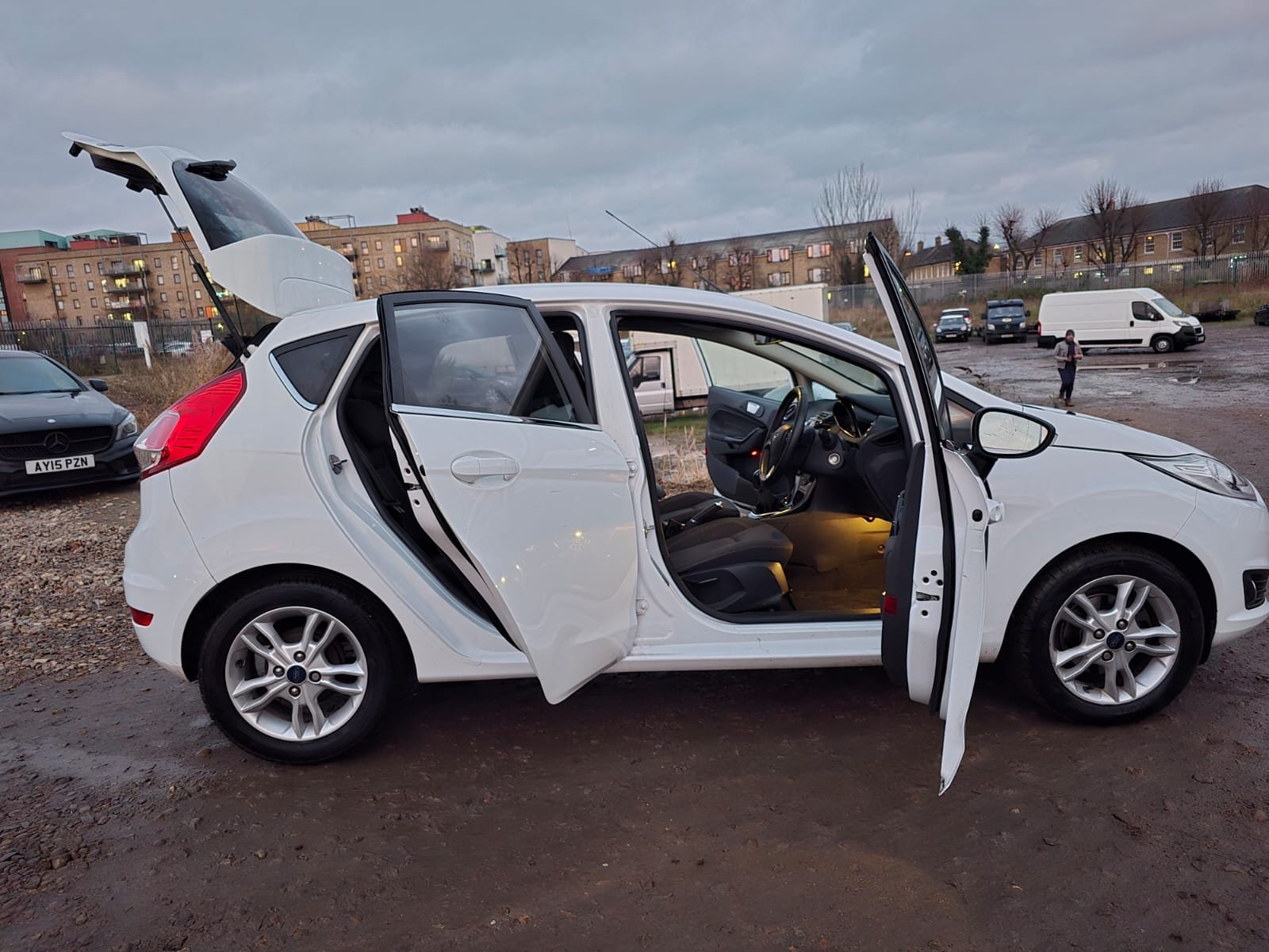 This car comes with 5 seats, White, 3 owners, Upgrades - Parking Sensor - Front and Rear, Convenience Pack, Heated Driver and Passenger Seats, Rear Centre Head Restraint, Smitty Cloth - Charcoal, Active City Stop, City Pack, Standard Features - 12V Power Socket - Front, 16in Alloy Wheels - 15 Spoke, 4.2in TFT Display, ABS - Anti-lock Braking System, AUX Connection, Aesthetic Lighting Package, Airbags - Curtain, Airbags - Driver Side Knee, Airbags - Front Passenger, Airbags - Head and Thorax, Airbags - Passenger Deactivation, Armrest - Centre Console, Automatic Dimming Rear View Mirror, Automatic Headlights - Rain Sensing Wipers - Auto Dimming Rear View Mirror, Automatic Rain Sensing Wipers, Bluetooth Hands-free Phone, Body Colour Exterior Mirrors, Brake Warning Lights - Automatic Flashing of Brake Lights Under Heavy Braking, Bumpers - Front and Rear - Body Colour, Centre Console - with Trinket Tray - 2x Cup Holders - Illuminated, Chrome Belt Line Finisher, Courtesy Light - Overhead with Theatre-Style Dimming, Courtesy Lights with Map Reading Lights, Cruise Control, DDS - Deflation Detection System, Door Handles - Body Colour, Door Mirrors - Power-Foldable with Puddle Lights, Drivers Airbag, EATC - Electronic Automatic Temperature Control - Climate Control, EBA - Emergency Brake Assist, EBD - Electronic Brakeforce Distribution, ECOmode, EPAS - Electric Power Assisted Steering, ESP - Electronic Stability Programme, Electric Windows - Front with One Touch Lowering Drivers, Emergency Assistance, Emergency Brake Warning - Automatic Hazard Warning Lights, Engine Immobiliser, Floor Mats - Front and Rear - Velour, Ford Easy Fuel Capless Refuelling System with Misfuel Inhibitor, Ford SYNC, Front Fog Lights - Chrome Bezel Rings, Front Lower Grille - Chrome Surround, Front Lower Grille Insert and Surround - Black, Front Seatback Map Pockets - Driver and Passenger, Front Upper Grille - Chrome Finish Surround, Front Upper Grille Insert - Chrome bars, Gear Knob - Leather, Gearshift Indicator Light, Gearshift Knob - Leather-Trimmed with Chrome Finish Bezel, Glovebox - Illuminated, Head Restraints - 2-way Adjustment, Head Restraints - Rear 2-Way Adjustment, Headlights - Automatic, Headlights - Follow Me Home, Headlights - Halogen Projector with Silver Bezel, Headliner - Woven, Heated Front Windscreen, High-Mounted Rear Brake Light, Hill Start Assist, IPS - Intelligent Protection System, Interior Door Lever - Chrome Finish, LED Ambient Courtesy Lighting, LED Daytime Running Lights, Leather-Trimmed Handbrake, Loadspace Compartment Light, Loadspace Floor Carpet, Locking Wheel Nuts, MyKey, Perimeter Anti Theft Alarm, Pollen Filter, Rake and Reach Steering Adjustable, Rear Courtesy Lights, Rear Privacy Glass, Rear Spoiler - Body Colour, Remote Central Locking, Removable Package Tray, Seats - 60-40 Split Folding Back and Fixed Cushion, Seats - Drivers 4-Way Adjustment, Seats - Drivers Lumbar Support, Seats - Front Comfort Style, Seats - ISOFIX Mounting Brackets for Child Seats, Sony CD-Radio Player-MP3 Compatibility, Sony DAB Digital Radio, Speakers - x6, Steering Wheel - 3-Spoke - Leather Trimmed with Bezel, Steering Wheel - Multifunction, Stowage Pockets - Driver and Front Passenger Seatbacks, Tailgate Handle - Body Colour with Chrome Finisher, Traction Control - TC, Trip Computer, Tyre Inflator Kit, Tyre Pressure Monitoring System, USB Connection, Voice Control - Audio